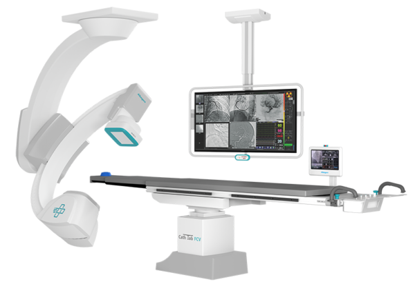 Su configuración con arco en C suspendido de techo permite mayor libertad de movimiento en sala, optimizando la ergonomía, el acceso al paciente y la integración con equipamiento complementario en salas de hemodinamia de alta complejidad.