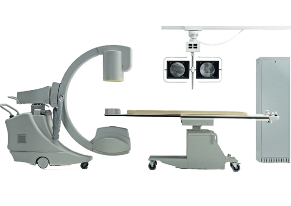 Según la configuración requerida, el sistema puede incorporar dos arcos: uno de techo (lateral) y otro de piso (frontal). Esto permite realizar proyecciones simultáneas en ambos planos.